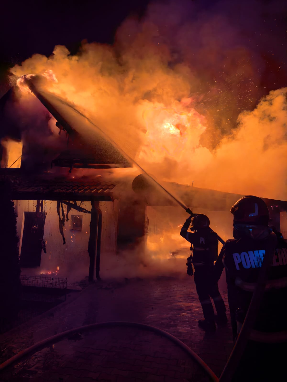 Aceștia au constatat că incendiul se manifesta generalizat la nivelul casei și al garajului. Incendiul a fost localizat, iar pompierii intervin în continuare pentru stingerea ultimelor focare și lichidarea acestuia.
