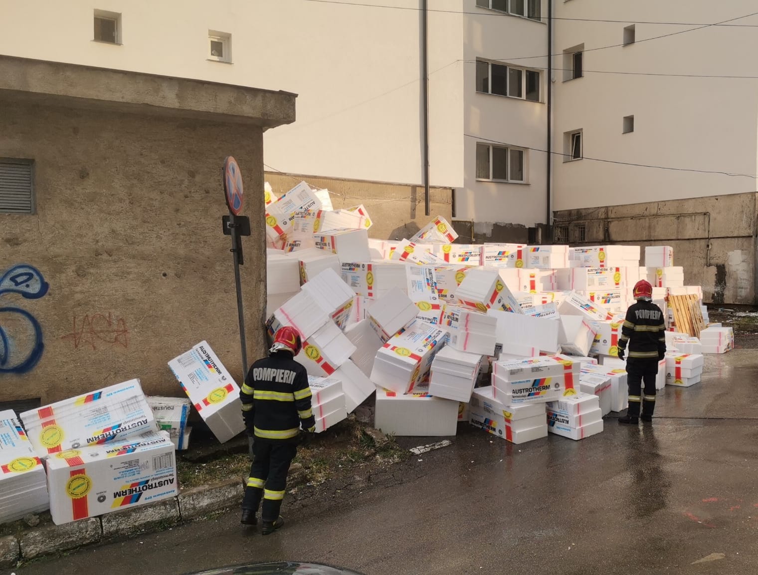 • Municipiul Botoșani, strada Uzinei – mai multe baxuri de polistiren au fost împrăștiate pe carosabil și trotuar, după ce au fost luate de vânt din zona unui bloc unde erau depozitate. Au acționat pompierii din cadrul Detașamentului Botoșani;
