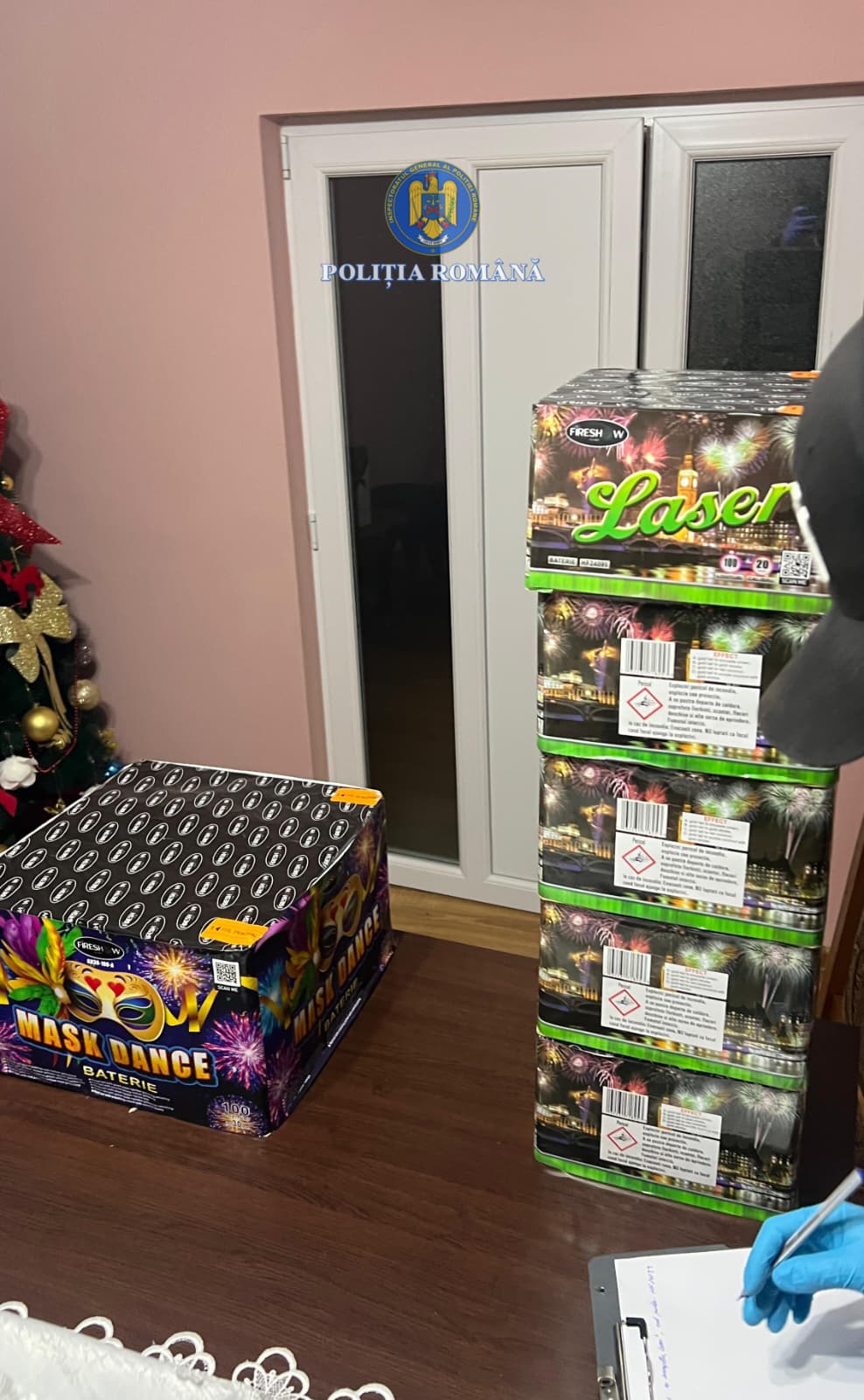 Tânărul nu deținea calitatea de pirotehnician autorizat pentru a efectua operațiuni cu articolele pirotehnice identificate. Întreaga cantitate, de aproximativ 55 de kilograme, de materiale pirotehnice a fost ridicată, în vederea continuării cercetărilor.