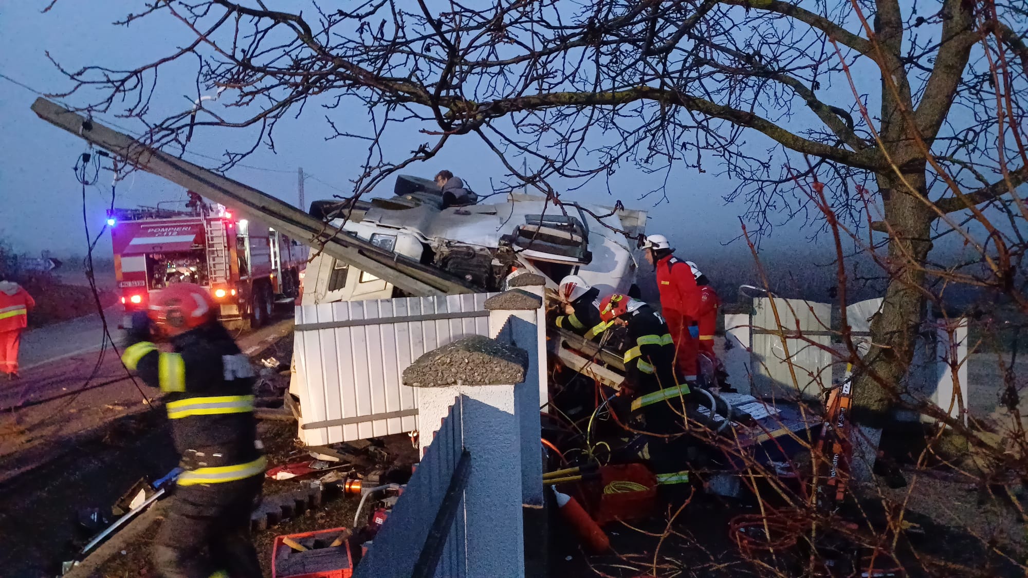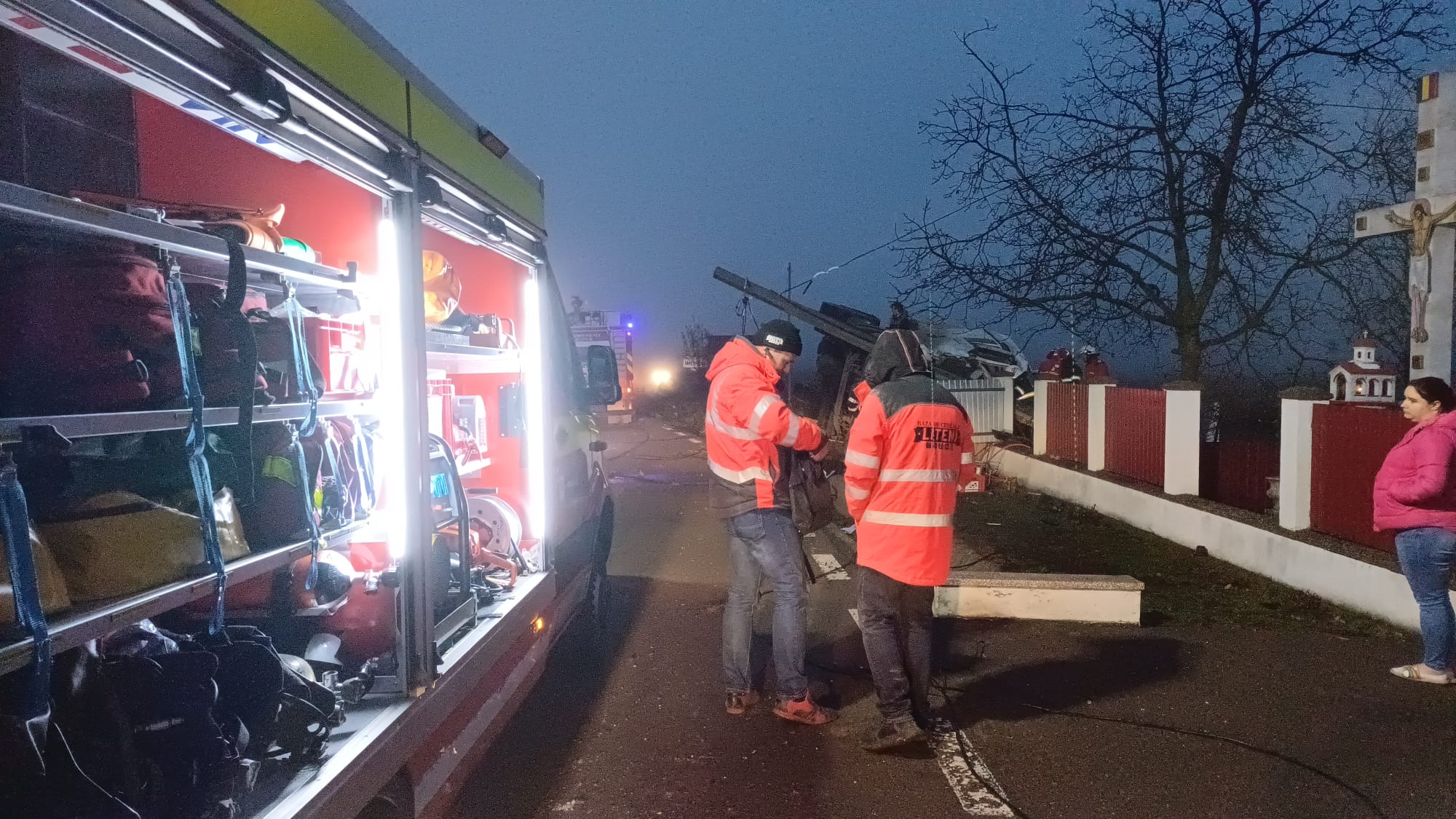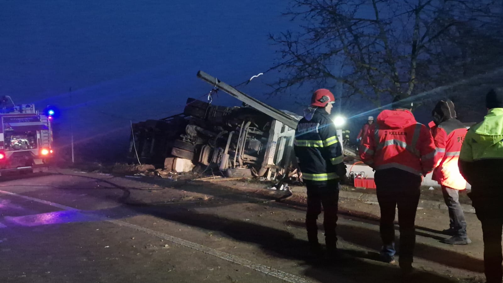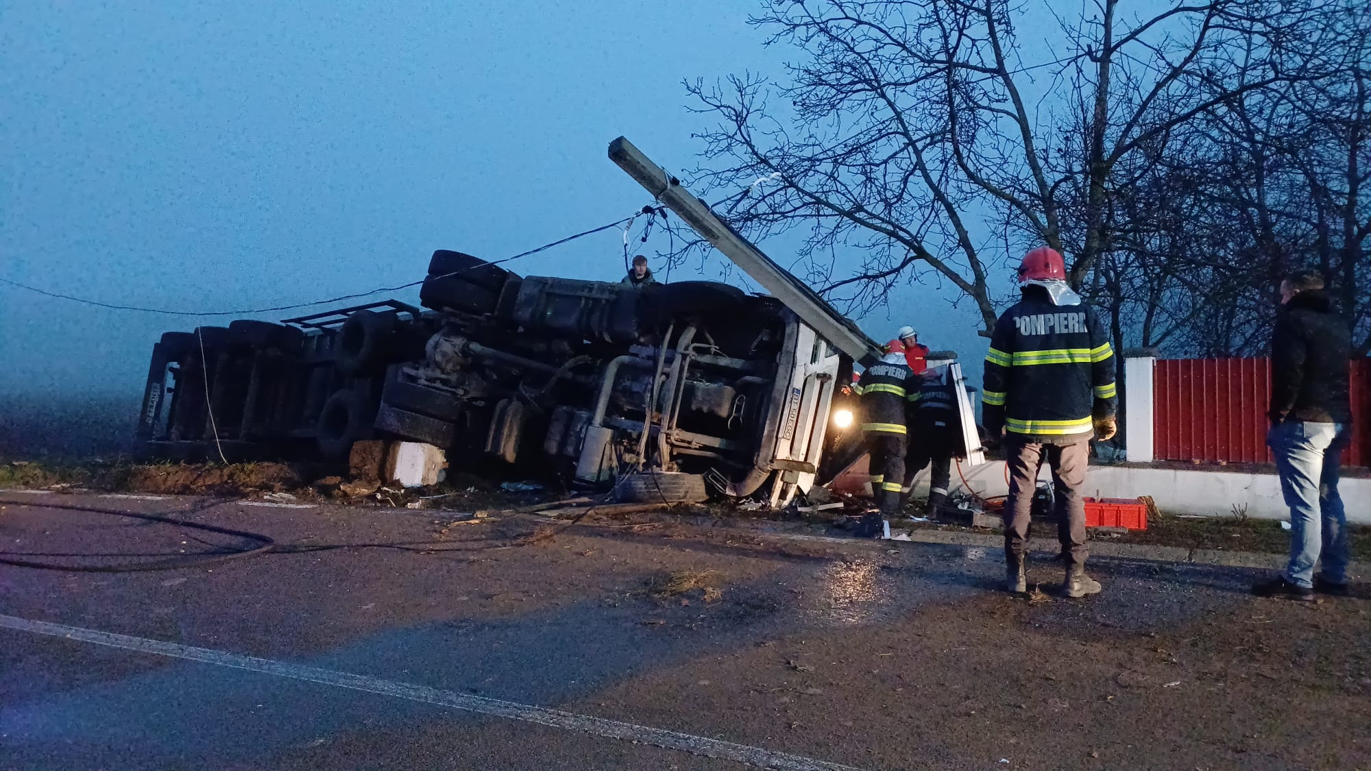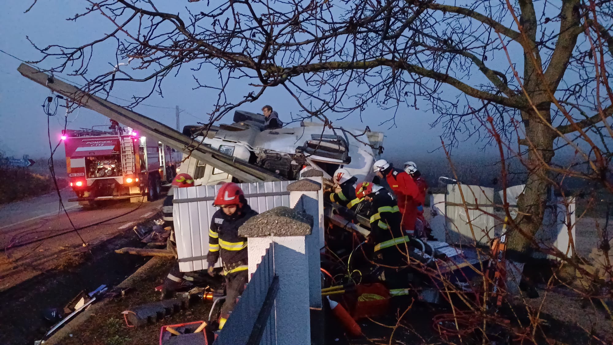 Șoferul, în vârstă de 27 de ani, din comuna Tudora, a rămas încarcerat. La fața locului sunt cadrele medicale, pompierii, care încearcă să îl scoată pe şofer din cabina strivită. De asemenea, la locul accidentului sunt și polițiștii, care urmează să stabilească circumstanțele în care s-a produs accidentul.