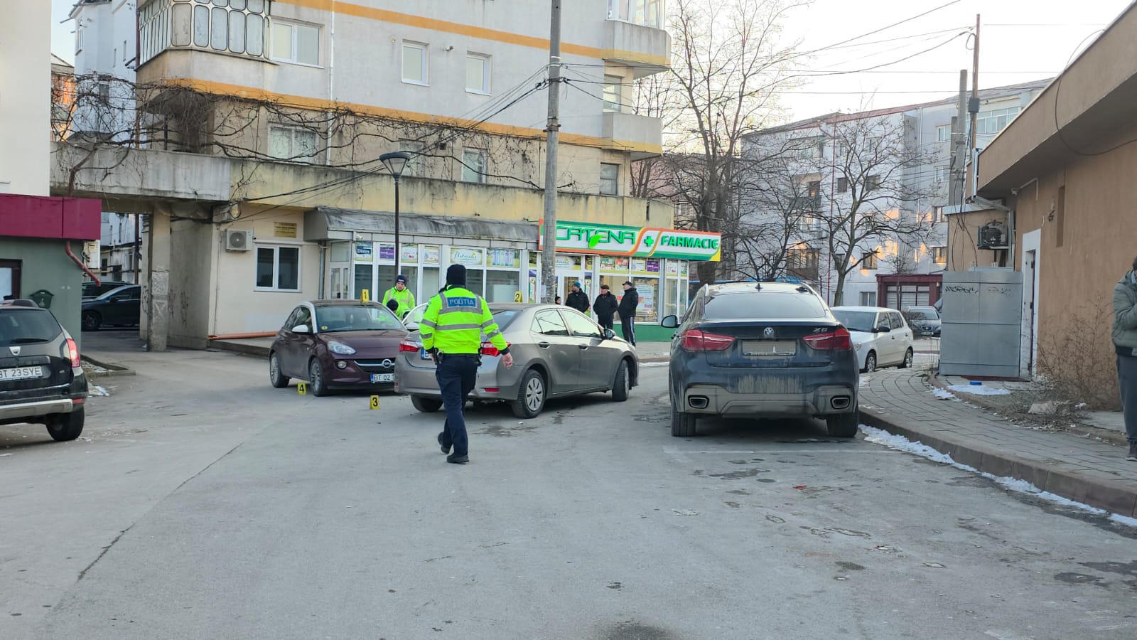 Un accident rutier a avut loc marți, în municipiul Botoșani, în zona Capăt 1, unde era linia de tramvai. Un șofer începător a ieșit cu un autoturism Opel din gangul din apropierea farmaciei și a lovit ușor un autoturism de ridesharing Toyota.