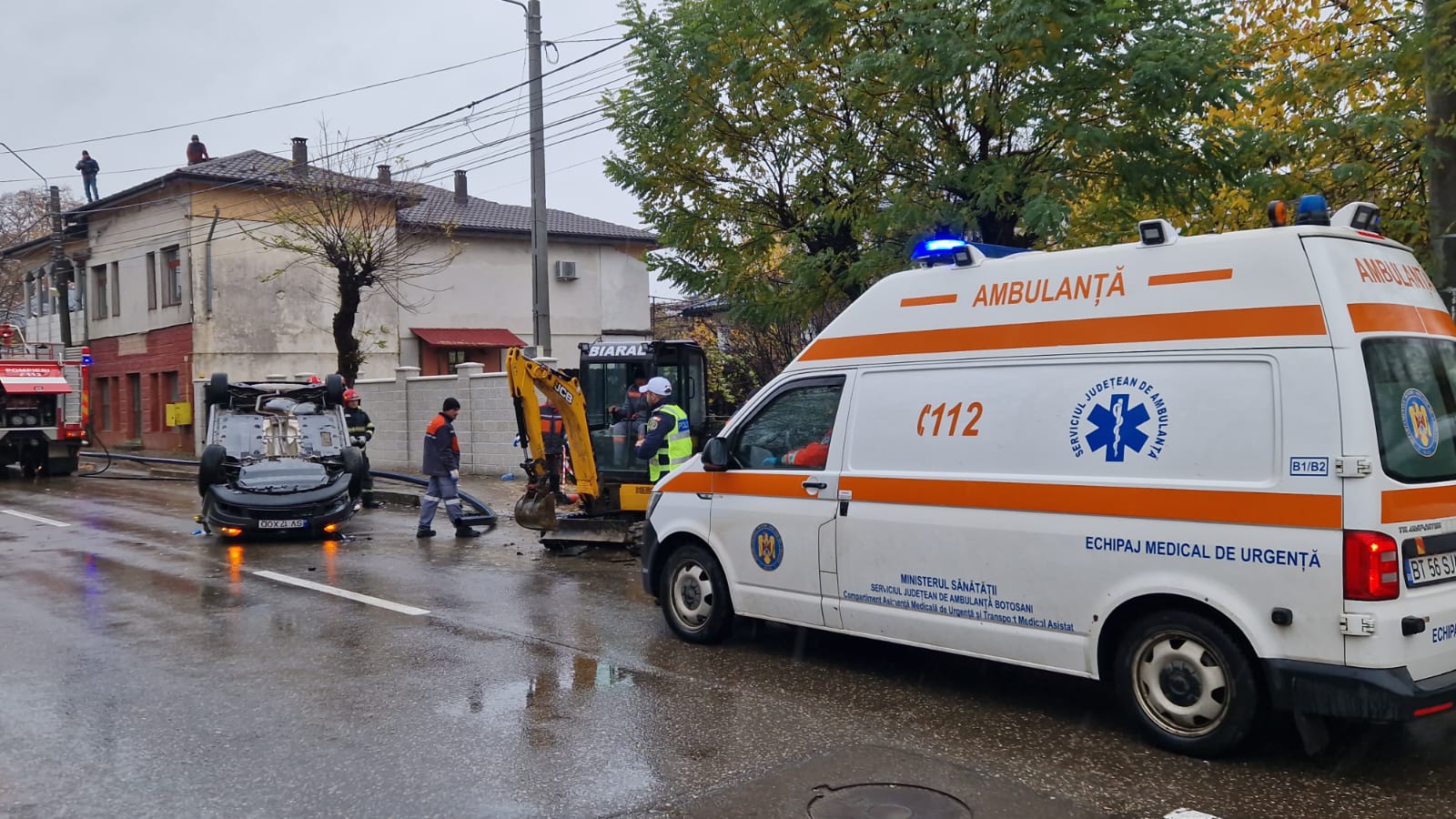 Evenimentul s-a produs pe strada Tudor Vladimirescu. Șoferul mașinii cu numere de Suceava circula pe strada Tudor Vladimirescu, iar la un moment dat a pierdut controlul volanului, mașina izbindu-se în utilajul unei firme de construcții care executa lucrări în zonă.