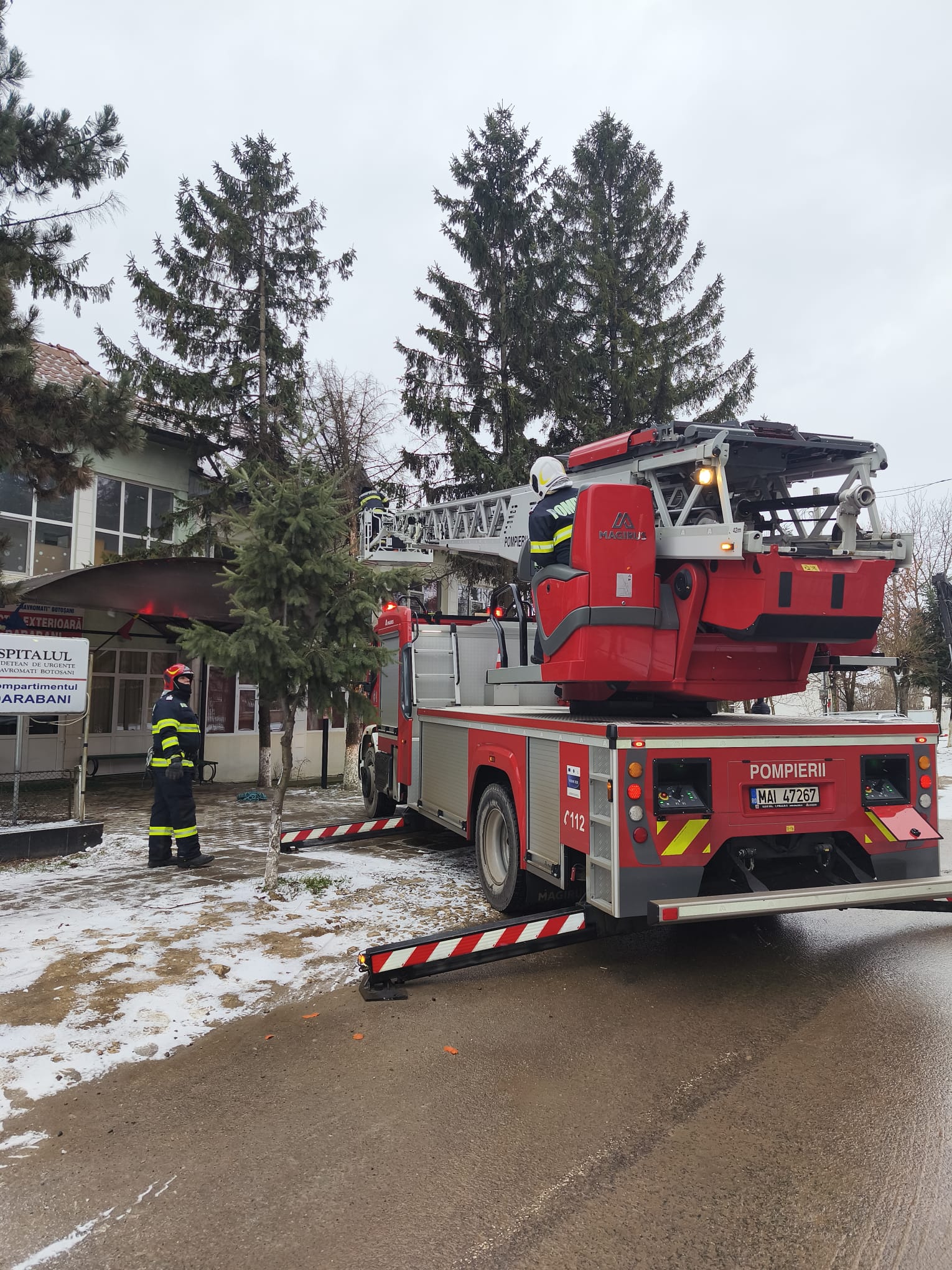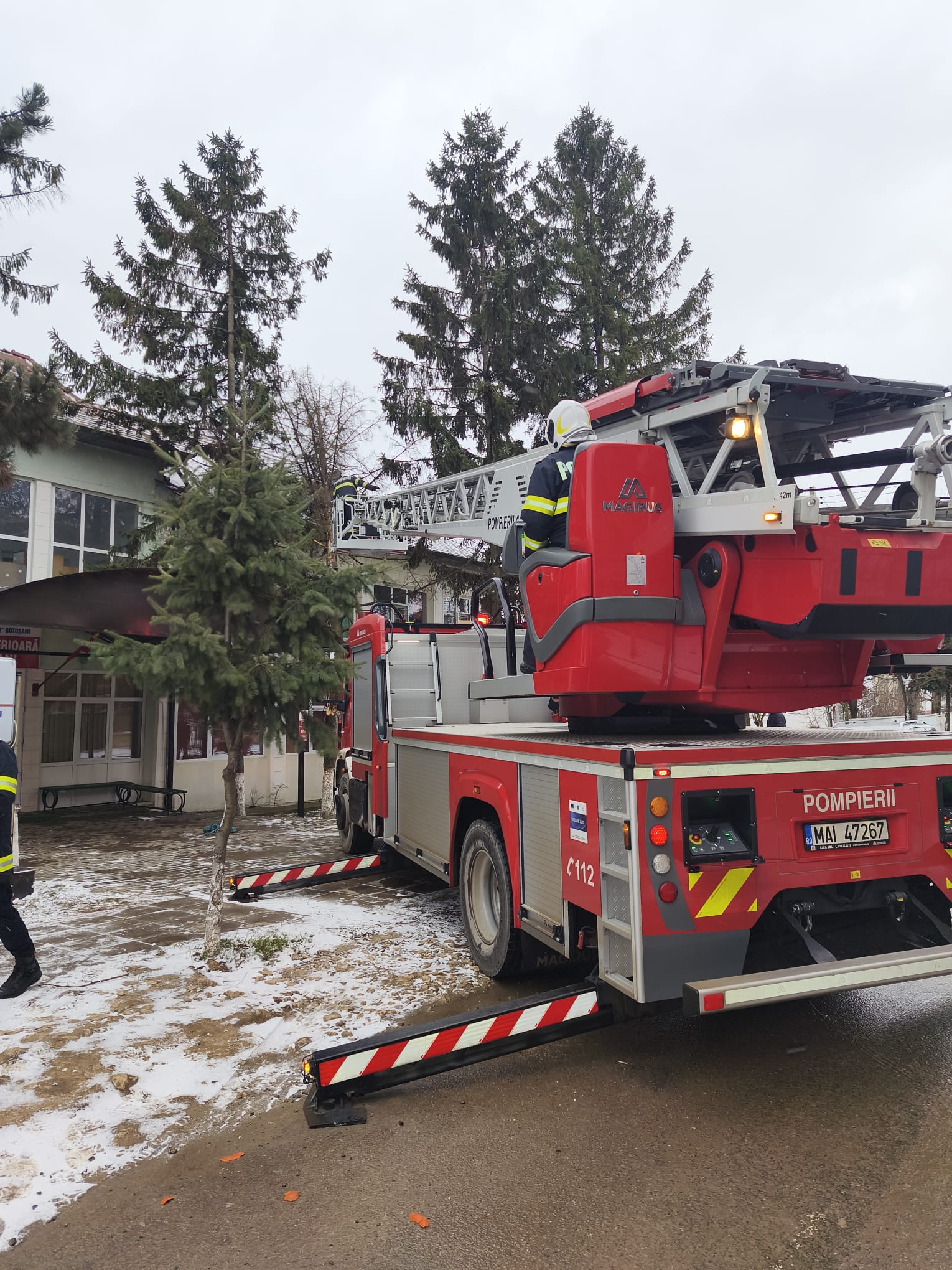 Intervenția s-a desfășurat în condiții de siguranță, iar arborele a fost tăiat controlat, fără a afecta clădirea spitalului.
