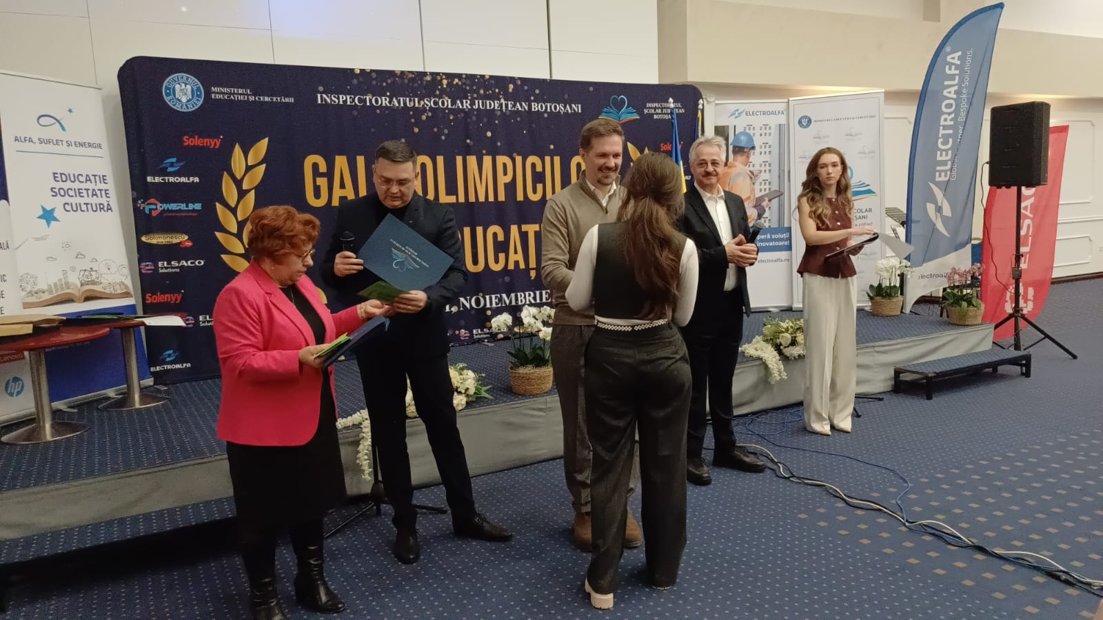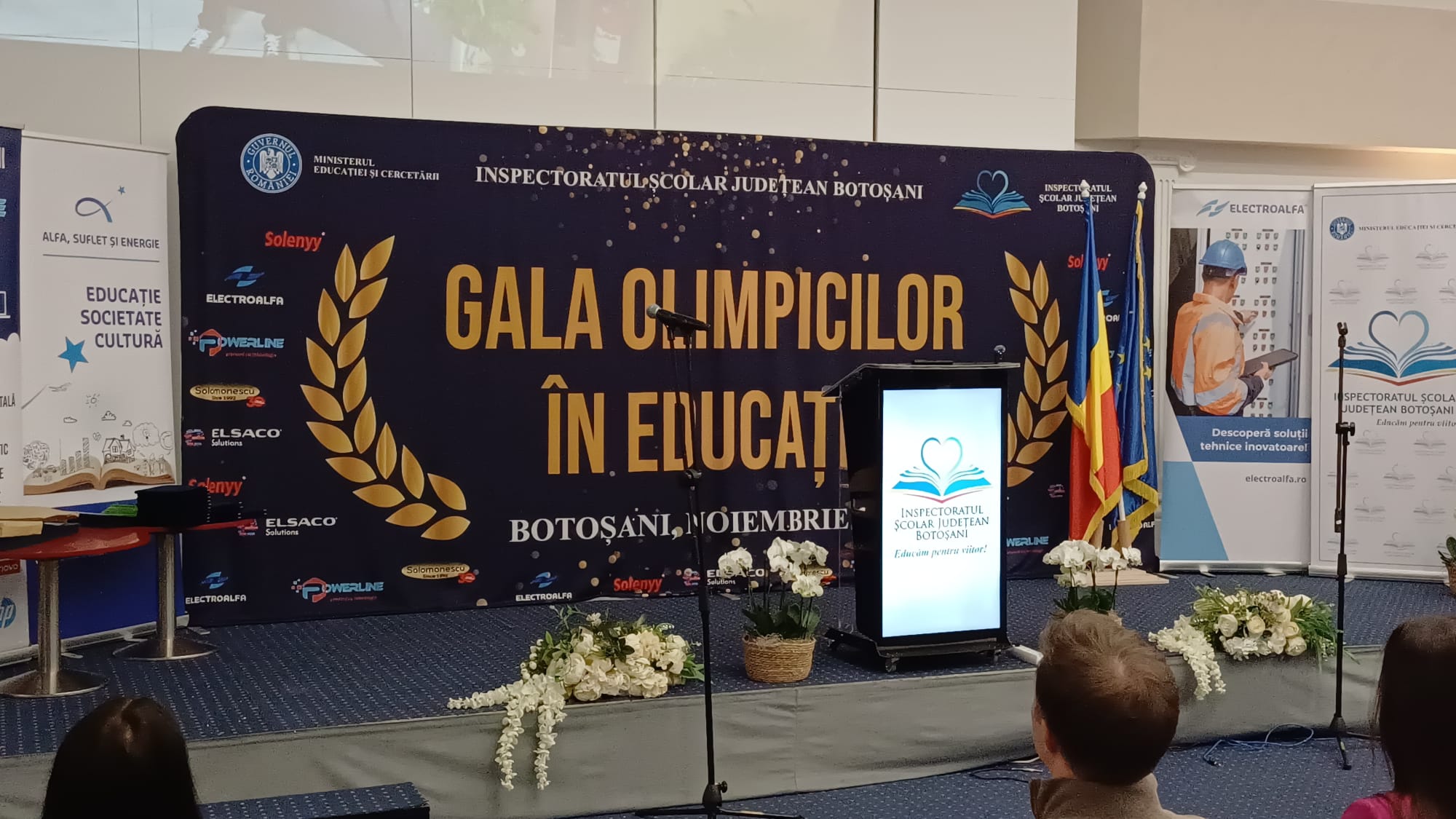 ,,Gala Olimpicilor în Educație’’ - ediția a IV -a, este un eveniment organizat de Inspectoratul Școlar Județean Botoșani, în parteneriat cu mediul de afaceri din Botoșani reprezentat, printre altele, de firmele Electro Alfa CM SRL, Elsaco SRL, Lacto Solomonescu SRL și Powerline SRL.