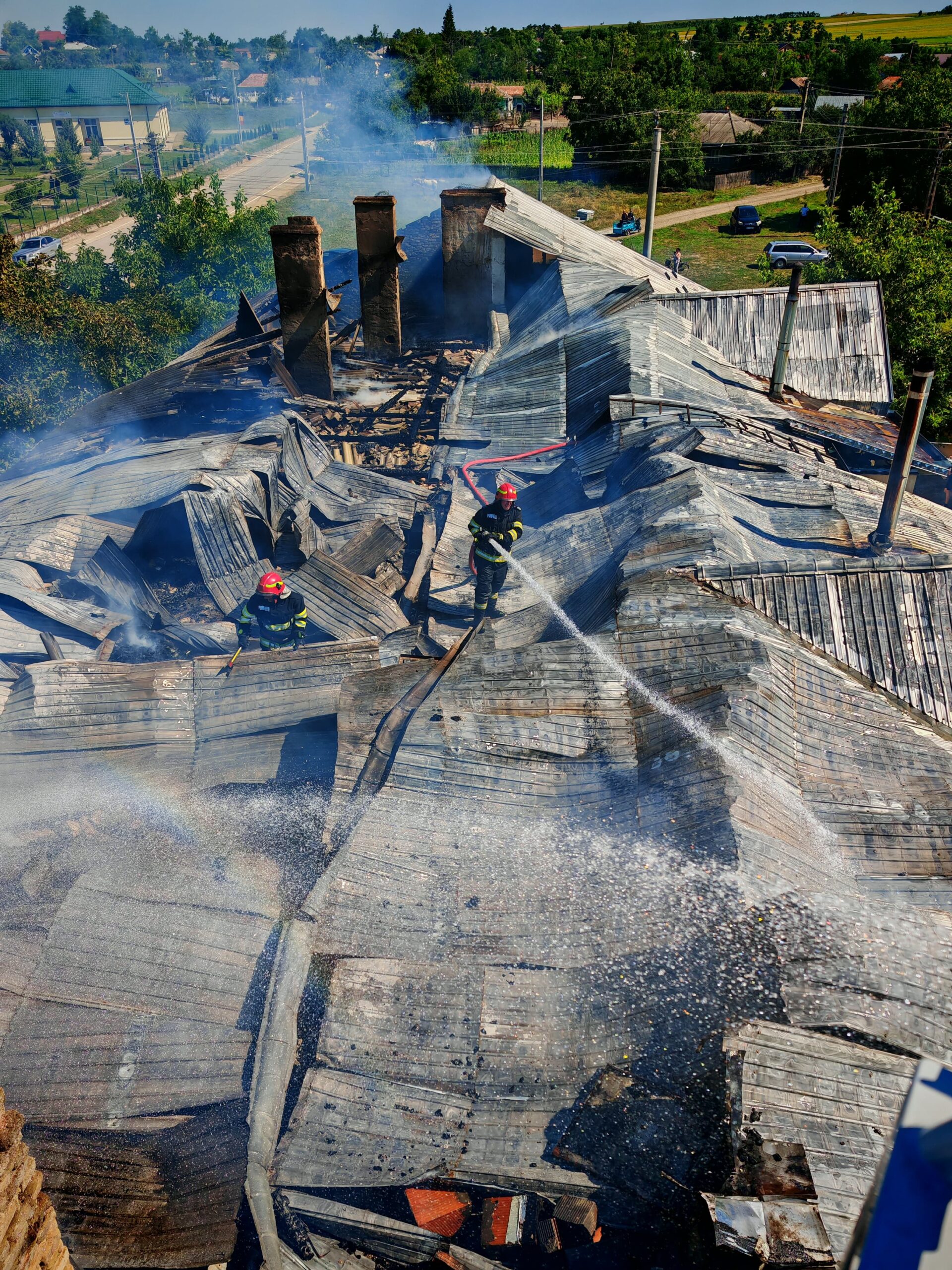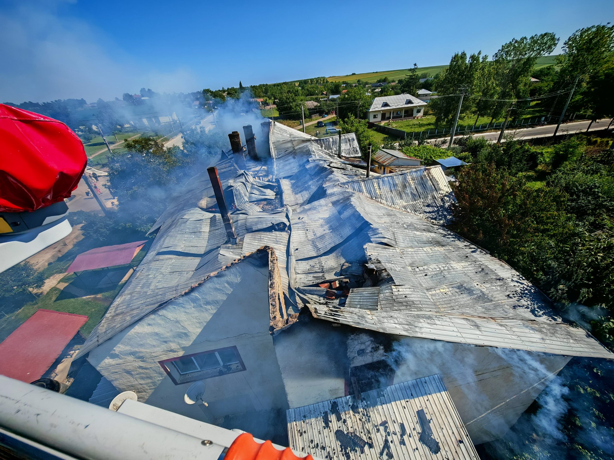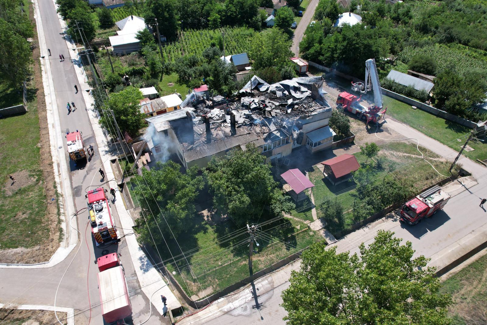 Aceștia au constatat faptul că ardea acoperișul clădirii, pe o suprafață de aproximativ 500 de metri pătrați, cu flacără și dejări mari de fum. Oamenii care se aflau în cladire, în momentul producerii evenimentului, erau ieșiți din interior. Este vorba de șapte persoane, cinci care locuiau în apartamentele de la etajul construcției, dar și două care lucrau la parter.
