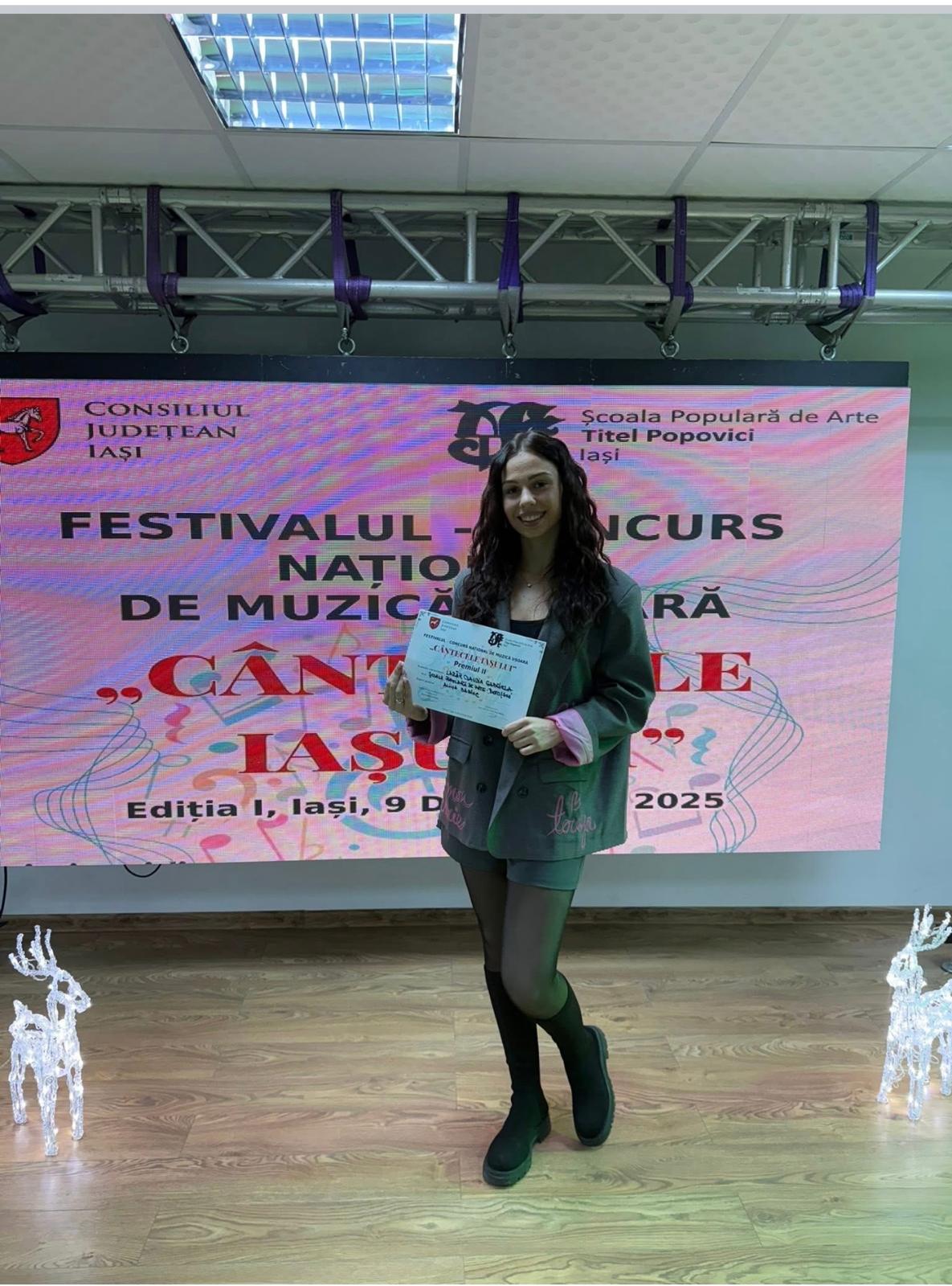 Premiul II a fost obținut de Lazăr Claudia, coordonator profesor de canto muzică ușoară Alina Babiuc, în cadrul Festivalului -Concurs Național „Cântecele Iașului "ediția I, precum și mențiune obținută de cursanta Cătălina Mahu, profesor coordonator de canto muzică populară Alexandra Trofin Ojog.