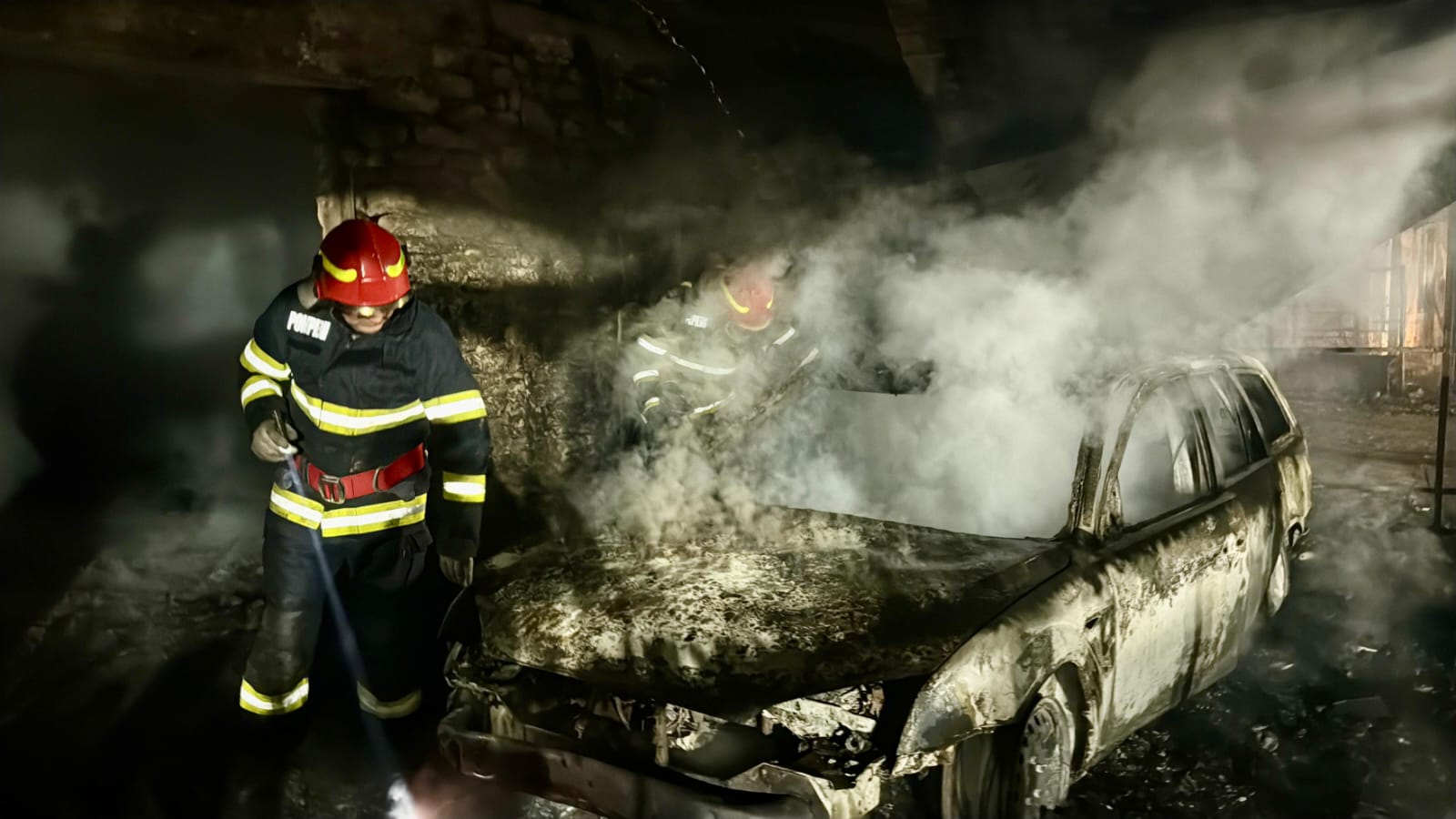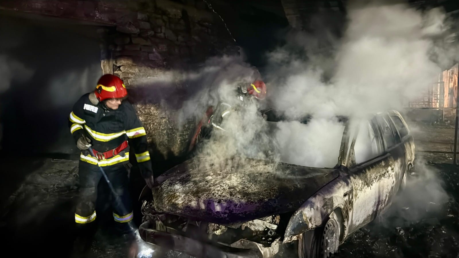Au ars bucătăria de vară, două autoturisme, un compresor, mai multe unelte de construcții și tinichigerie auto, precum și o cantitate însemnată de materiale combustibile din lemn și plastic aparținând primariei și care se aflau în interiorul halei.